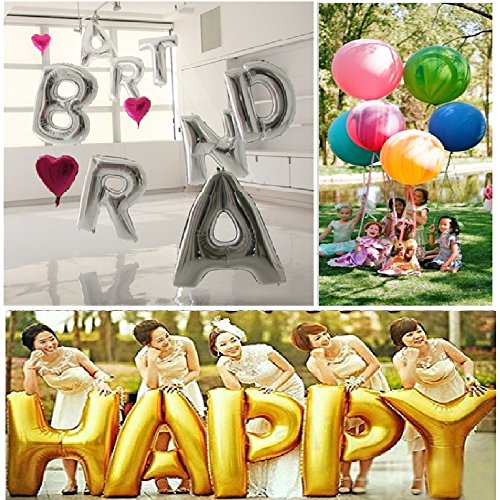 Made of aluminum foil material balloons with a metallic luster, color uniformity, Materials can be reused,after USE please put the ball to pinch flat