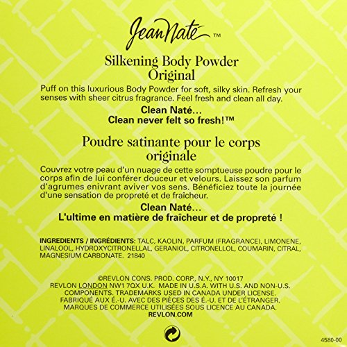 Jean Nate Body Powder Original 6 oz. Go one step beyond any clean you've ever known with Jean Nate Silkening Body Powder. Puff on this luxurious body powder for soft, silky skin as the sheer citrus fragrance refreshes your senses.