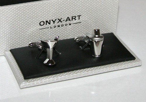 -. Title : Onyx Art Men's Novelty Cufflinks - Martini Glass + Cocktail Shaker