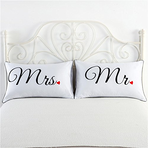 ADASMILE King Queen I Love You Romantic Wedding Valentine's Gift Couple Pillowcases Couple Pillow Cases (loving heart mr.mrs., 19"X29" (48X74CM))