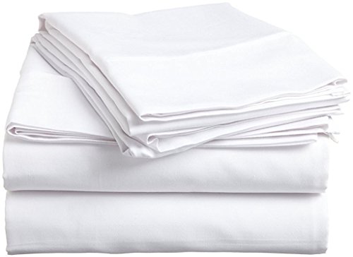 Aashirainwear 4 PCs Bed Sheet Set 100% Cotton 400-Thread-Count Queen Size White Solid (15 Inch Drop)