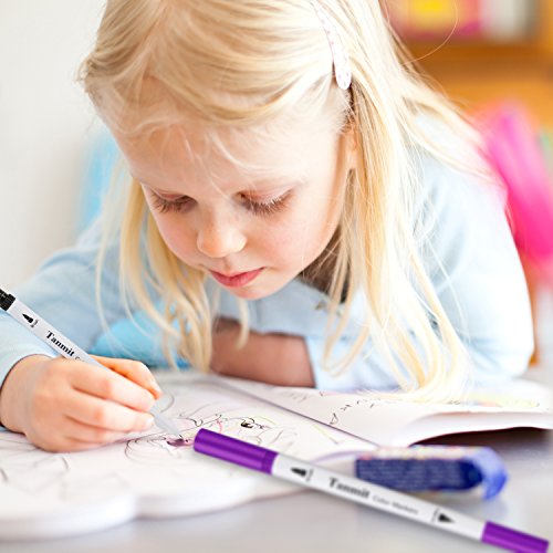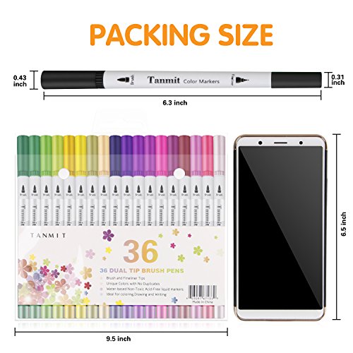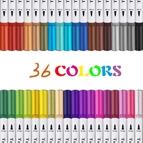 Dual Tip Brush Marker Pens, Tanmit 0.4 Fine Tip Markers & Brush Highlighter Pen Set of 36 for Bullet Journal Adults Coloring Book Note Taking Writing Planning Art Project