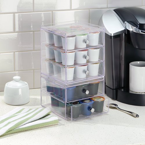 The InterDesign Coffee Pod Organizer makes it easy and convenient to store all of your coffee pods in one place. This stackable unit includes 2 drawers with chrome handles, so just organize, brew, & GO!.