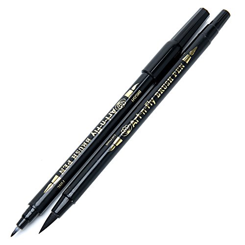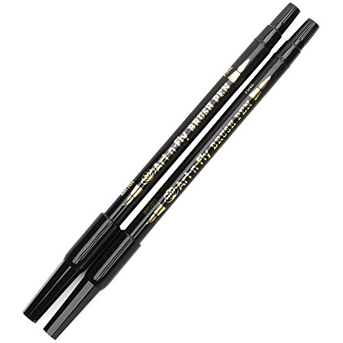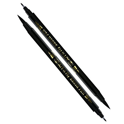 2 Dual Tip Black Brush Pens for Lettering Calligraphy Pen. Fine and Large Black Brush Marker for Drawing