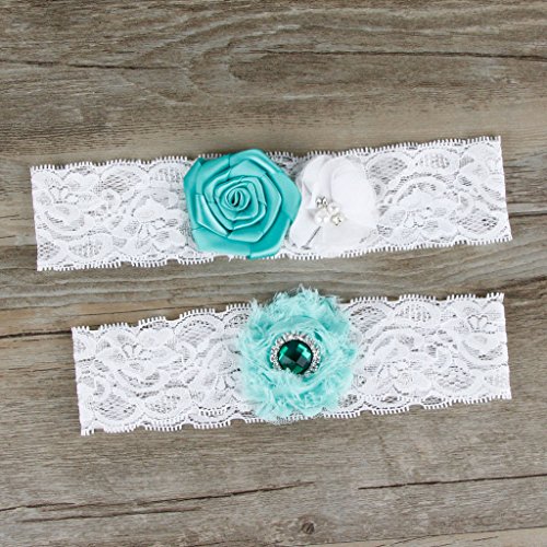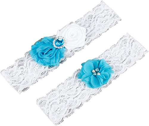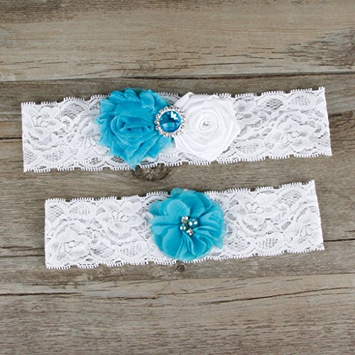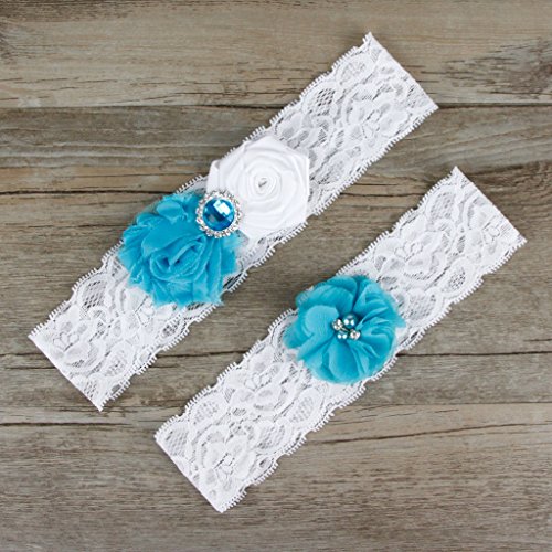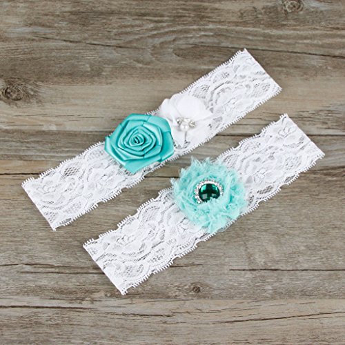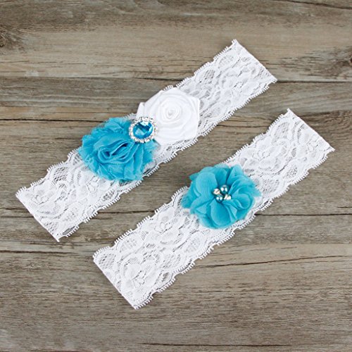AugusWu Women White Wedding Garters for Bride Lace 2 Pcs Sets Turquoise