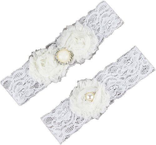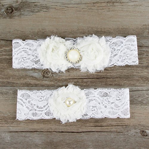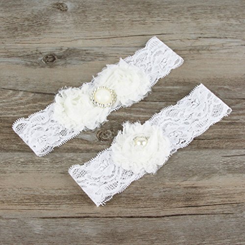 AugusWu Women White Wedding Garters for Bride Lace 2 Pcs Sets Ivory