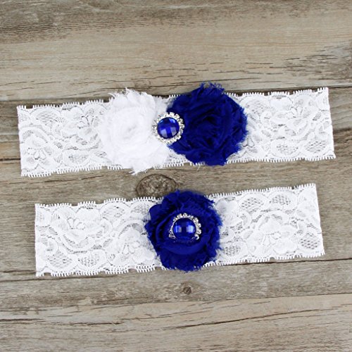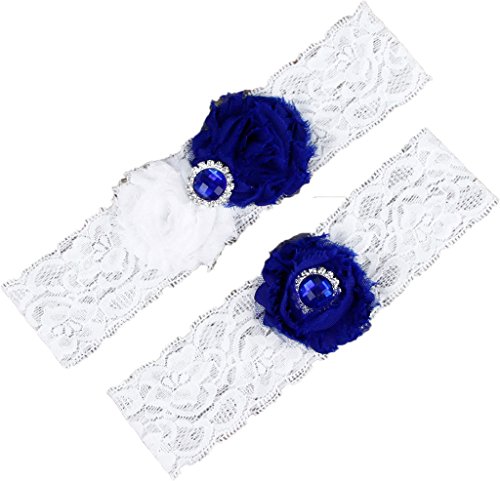 AugusWu Women White Wedding Garters for Bride Lace 2 Pcs Sets Royal Blue