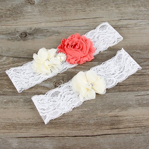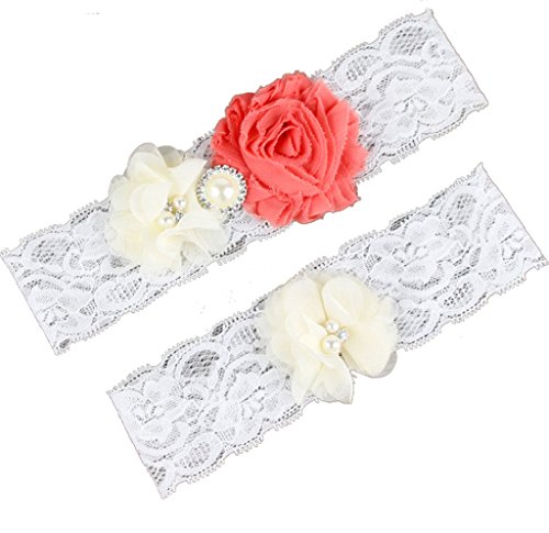 AugusWu Women White Wedding Garters for Bride Lace 2 Pcs Sets Watermelon Red