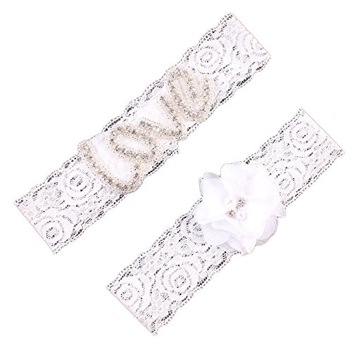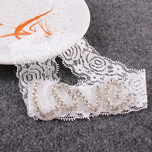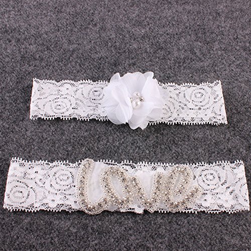 AugusWu Women White Wedding Garters for Bride Lace 2 Pcs Sets Love