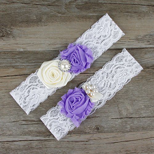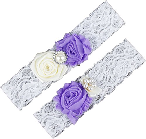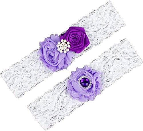 AugusWu Women White Wedding Garters for Bride Lace 2 Pcs Sets Purple