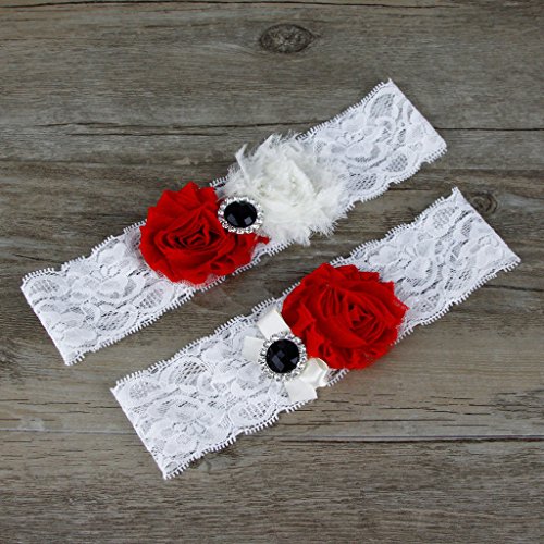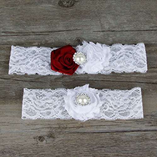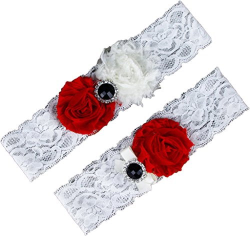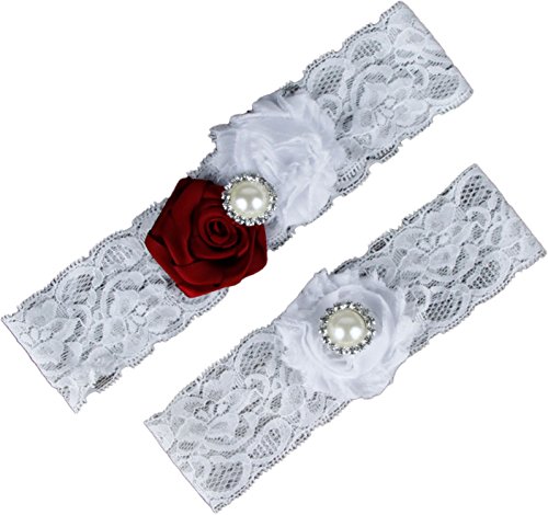 AugusWu Women White Wedding Garters for Bride Lace 2 Pcs Sets Red