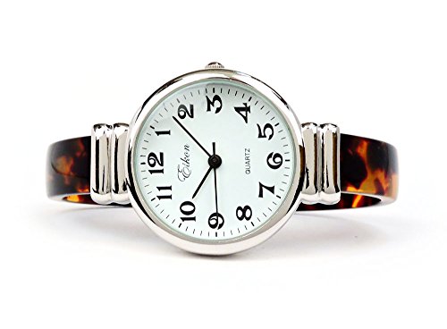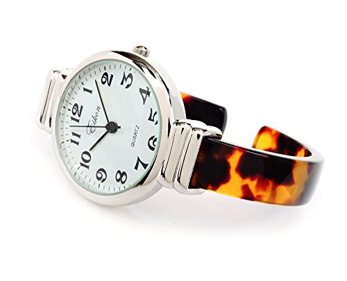 Tortoise Silver Acrylic Band Slim Case Women's Bangle Cuff Watch