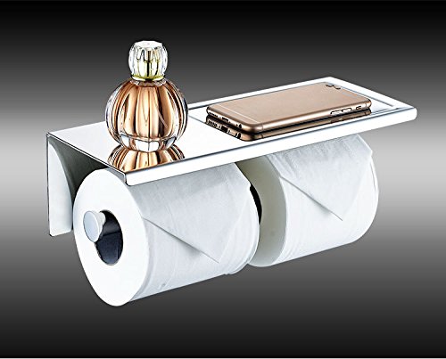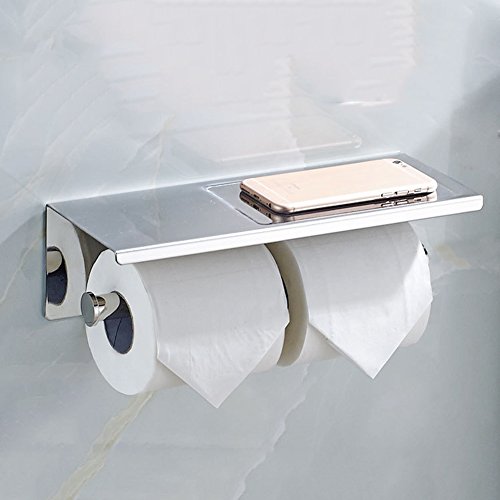 Vivian Double Roll Toilet Paper Holder Stainless Steel Bathroom Kitchen Paper Towel Dispenser Tissue Roll Hanger With Mobile Phone Storage Shelf