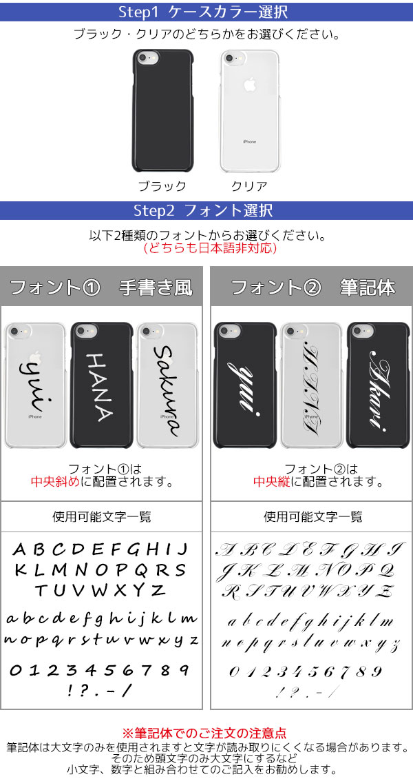 フォントは2種類からお選びいただくだけで自分だけのケースが完成します!