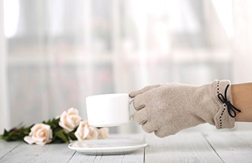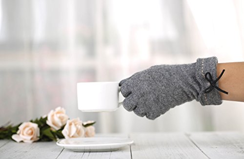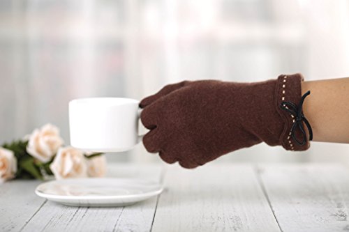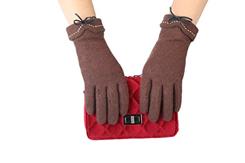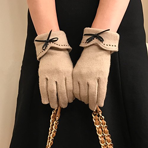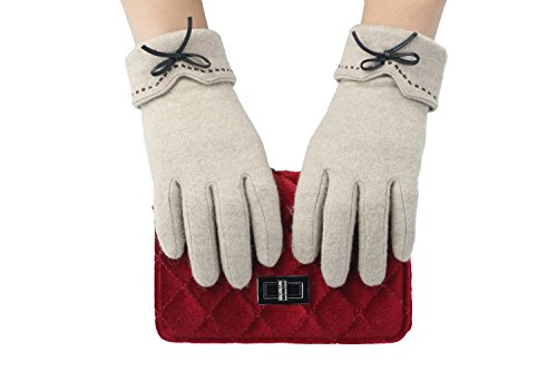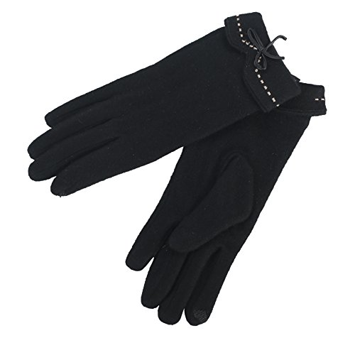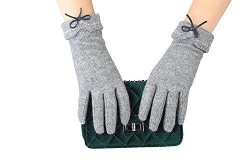 Binding : Apparel Product Description PotomacRose wool gloves are great winter accessories for women. They are made with high quality wool fabric to give your hands a super warm, soft and comfy feeling. Tech-tips on index finger and thumb allow you to use touchscreen devices outdoor. Neat bow accents and multiple colors make them awesome addition to your style for any occasion. Product Measurement: 9 inches (length), 7.3 inches (Palm Perimeter), 3.5 inches (middle finger) 0