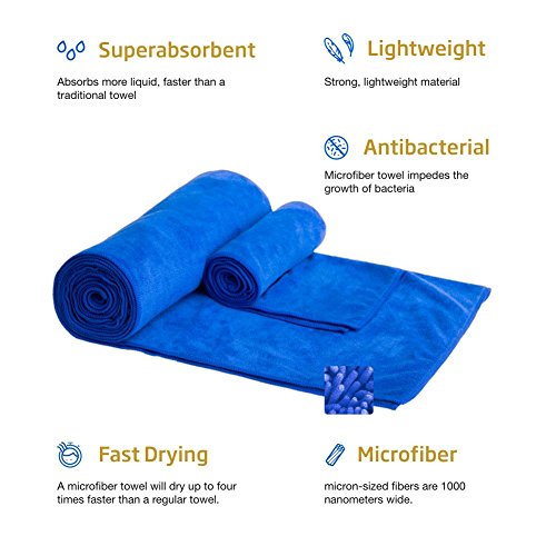 THE RIGHT TOWEL FOR EVERY OCCASION: The 2 towel pack includes a large 72x24’’ shower towel and a smaller 29x14’’ face/hand towel. The microfiber towels are very versatile and they are perfect for the gym, the beach or your camping trip. Use the microfiber towel as a yoga mat towel and never worry about sweating.