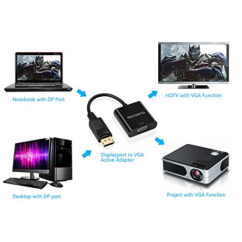 This DisplayPort to VGA Active adapter facilitates to connect your Displayport equipped laptop or desktop to a VGA enabled monitor or projector with a separate VGA cable(sold separately).