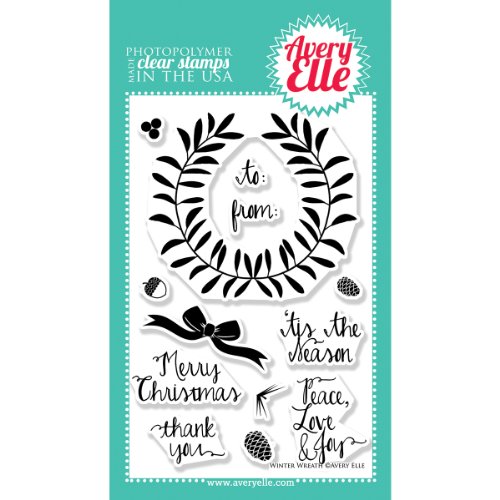 Avery Elle Stamp Set, 4-Inch by 6-Inch, Winter Wreath, Clear