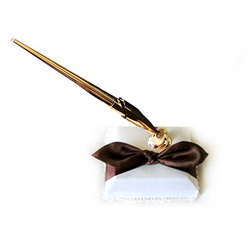 SACASUSA ( ) Elegant Bridal Wedding Reception IVORY Pen Set with Brown Satin Bow