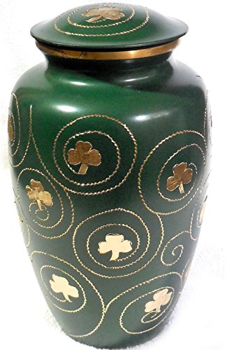 Shamrock Cremation Urn - Clover Funeral Urn in Irish Green - Burial Urn for Human Ashes - Detailed Hand Engraving - 100% Brass