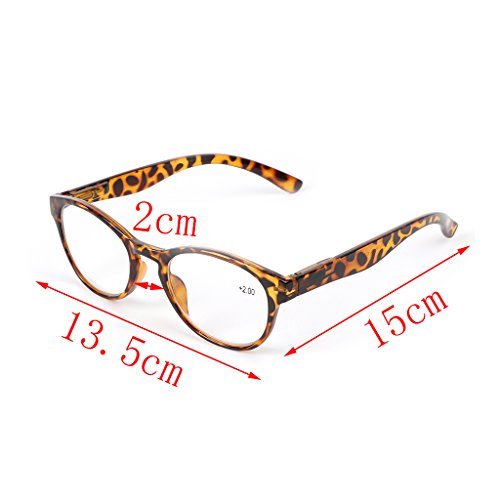 Studio : Bubile Publisher : Bubile Binding : Health and Beauty Product Description ★100% brand new and high quality ★Unisex comfortable reading glasses ★Glasses Leg Color: Black/ Leopard ★Glasses Frame Material: Plastic ★Lens Material: Resin ★Strength: 1.00/ 1.50/ 2.00/ 2.50/ 3.00/ 3.50/ 4.00 ★Size: See the picture ★Quantity:1PC