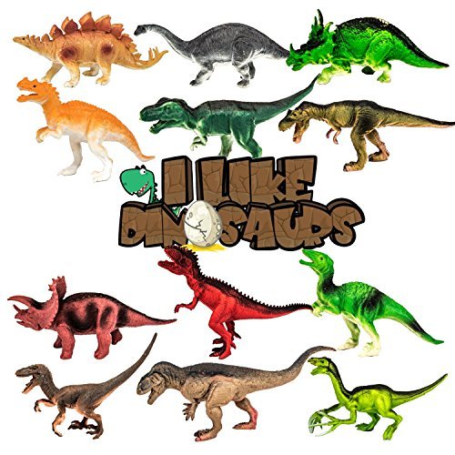 I Like Dinosaurs 12 Pack of Realistic Jumbo Sized 8 " Inch Plastic Dinosaur Toys