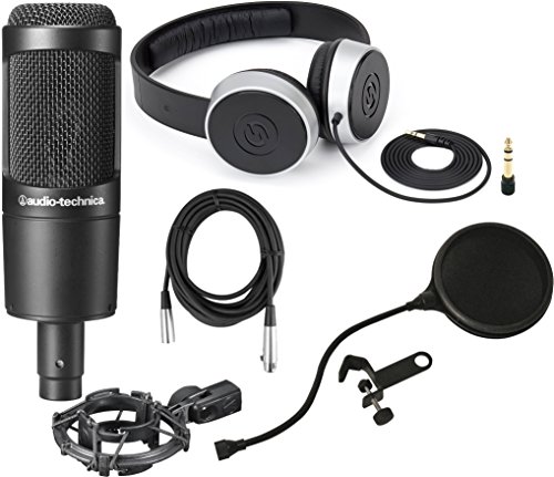 -. Title : Audio Technica AT2035 Large Diphragm Condenser Microphone w/Shock Mount, Pop Filter, Headphones, and Mic Cable