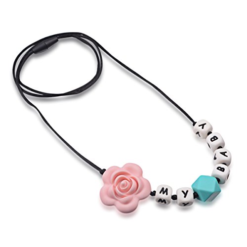Teething Necklace for Female, Letter ChewBeads, Silicone Charm Teether Neckless, Baby Nursing Necklace,Baby Teether, Instant Teething Pain Relief. Stimulates Visual, Motor, Sensory Development