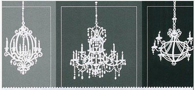 -. Binding : Kitchen -. EAN : 0623467561442 -. Feature : First Quality New Unpasted Border / Pattern Number: CD046144B / 5 yard Spool / Border height: 11 1/8" / Pattern repeat: 27" -. Label : The Wallpaper and Border Store -. Manufacturer : The Wallpaper and Border Store -. PackageQuantity : 1 -. ProductGroup : Home Improvement -. ProductTypeName : HOME -. Publisher : The Wallpaper and Border Store -. Studio : The Wallpaper and Border Store -. Title : Wallpaper Border Modern White Chandeliers on Blocks of Black & Gray -. UPC : 623467561442