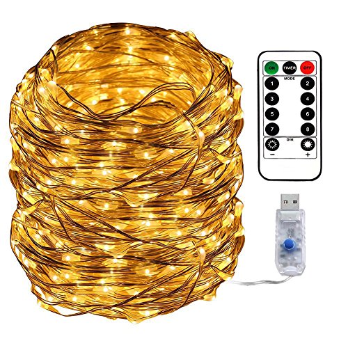33 ft String Lights, Jimmidda 100 LED Copper Wire USB Operated, Dimmable, Waterproof with Remote