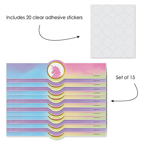 Rainbow Unicorn DIY Wrappers INCLUDES 15 magical unicorn party wrappers and 20 clear stickers. Rainbow Unicorn DIY party supplies are perfect for a baby shower or birthday party.