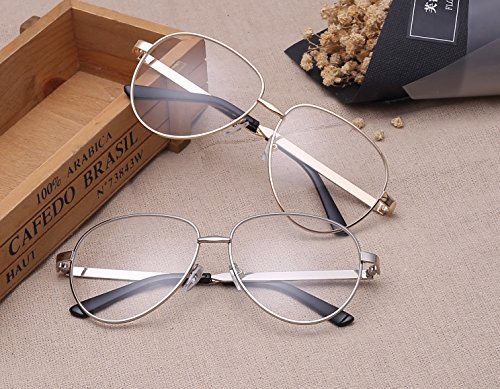ALWAYSUV klar Linsen Brillenfassung Metal-Bugel Klassische Brille Aviator Clear Lens Glasses Retro Brillen Fashion Glasses