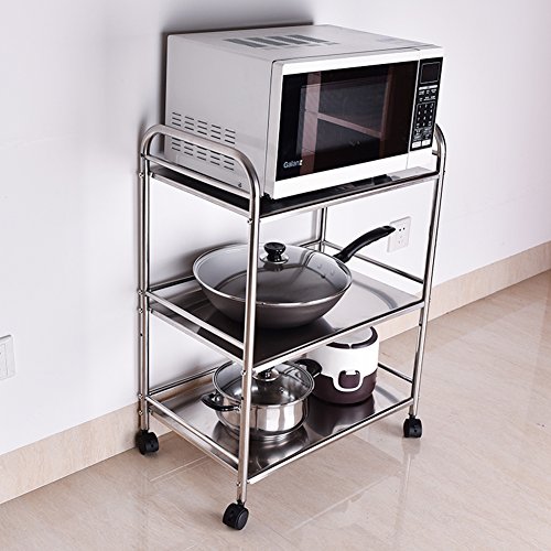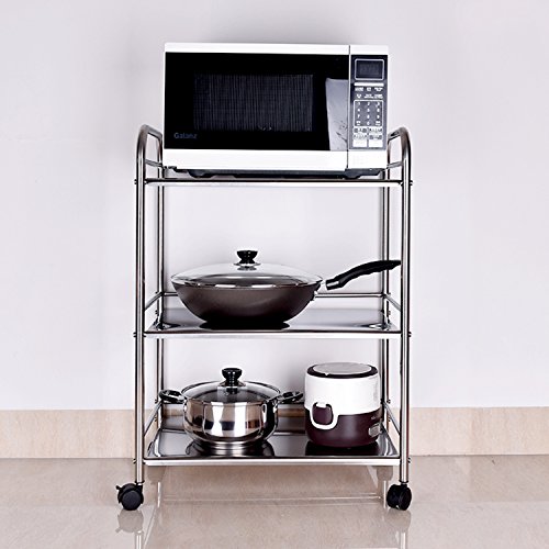 Yeeper 3-Tier Sturdy Rack For Microwave Oven, Kitchen Storage Shelf With Flexible Variable Universal Wheel And Removable Hooks .OVER 165lbs Weight Capacity