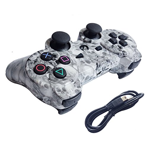 Tevodo Wireless Bluetooth Controller For PS3 Double Shock - Bundled with USB charge cord?White Skull?