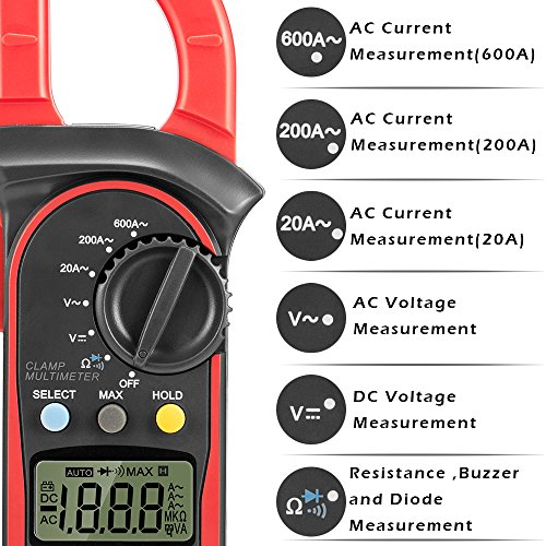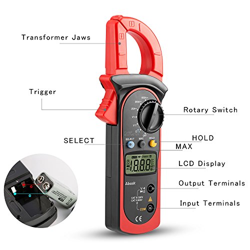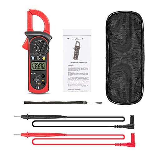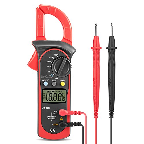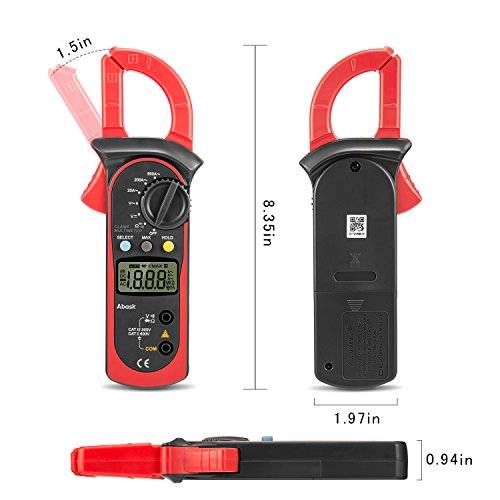 Digital Clamp Meter, Abask UT202A Stable Safe and Reliable 3 1/2Digital Clamp Multimeter For AC and DC voltage AC current Resistance Diodes Circuit off and Other Tests Backlight LCD Display (Red)