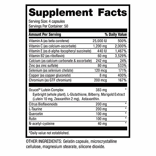 Ocucel Lutein Complex contains Eyebright, an ancient botanical herb, antioxidants Bilberry Fruit Extract and L-Glutathione; and the widely researched 10mg of Lutein and 500mcg of Zeaxanthin to help support macular pigment levels.*