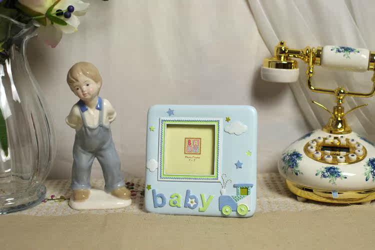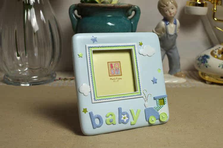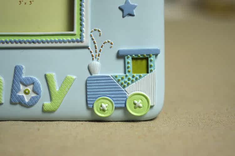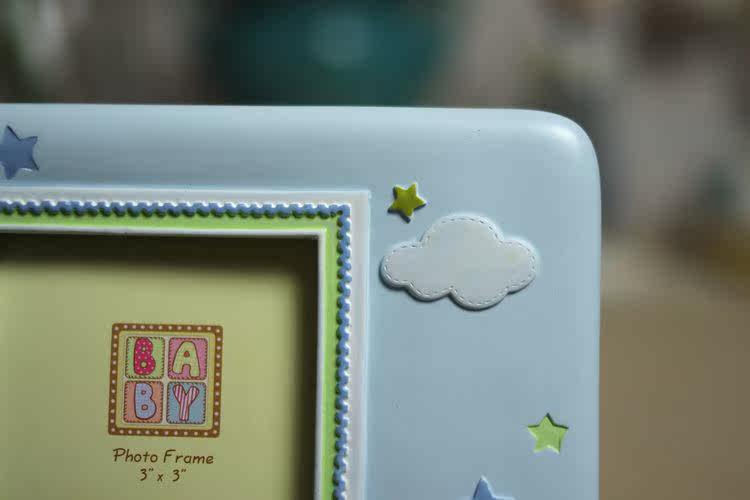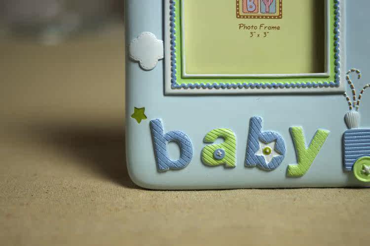 [Specification] Baby Size: 14.6 * 14.5 * 1.9CM; Photo Size: 3 * 3 "[Color] pink, blue[Material] green resin, hand painted, acrylic surface, flannel back