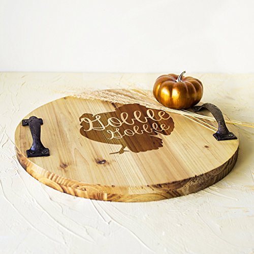 Cathy's Concepts Rustic Turkey Wood Tray with Metal Handles