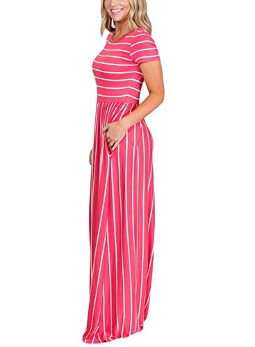 Lovezesent Women's Striped Round Neck Short Sleeve Maxi Summer Casual Dress