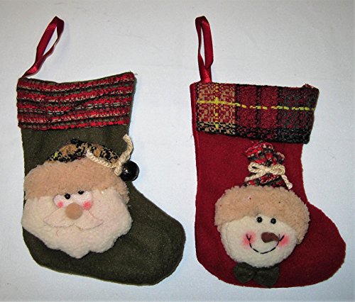- PAIR! 6" x 4" miniature coordinating Christmas Stockings with Santa and a Snowman