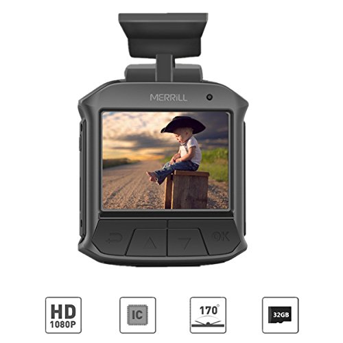 MERRiLL Dash Cam GPS 150° Wide Angle 2.4 Inch 12 Megapixel 1080P with Night Vision, Loop Recording, G-sensor, Parking Monitor, 32G SD Card