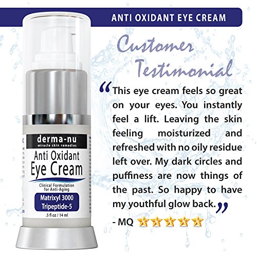 Our Derma-nu Anti Aging Eye Cream Good as a Day or Night Eye Cream, Gives Your Skin The Following Benefits: • Eliminate Puffiness, Dark Circles, Fine Lines and Wrinkles