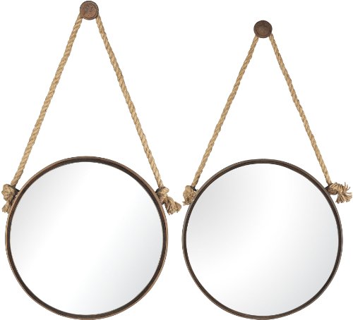 Sterling 53-8502 Iron Holder Mirrors on Rope, Round, Rust, Set of 2