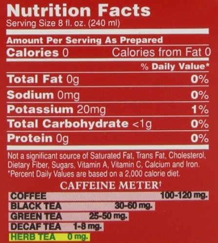 -. Feature : Pack of six 20-count boxes of calorie-free herbal tea (120 total tea bags) / Fine herbal tea blended with red raspberries, apples, elderberries, rose hips, and other natural flavors / Caffeine-free and gluten-free, with no calories and no carbohydrates; Kosher Parve, 100% natural / This soothing herb tea relaxes and refreshes with all-natural flavors / Ships in Certified Frustration-Free Packaging