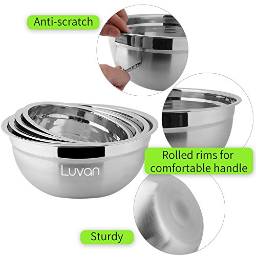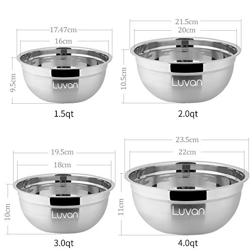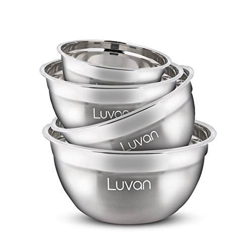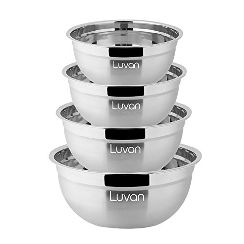 Luvan Stainless Steel Mixing Bowls for Cooking Supplies with Polished Mirror Finish (Set of 4)