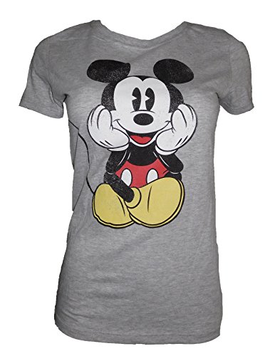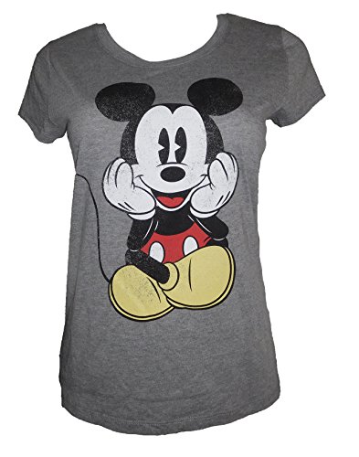 Disney Women's Juniors Distressed Print Sitting Mickey Shirt