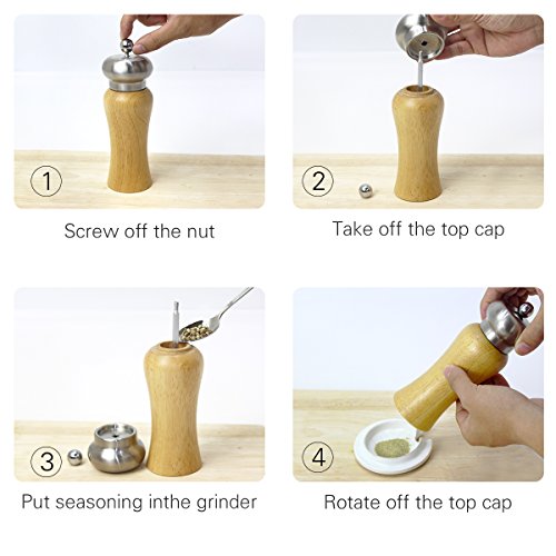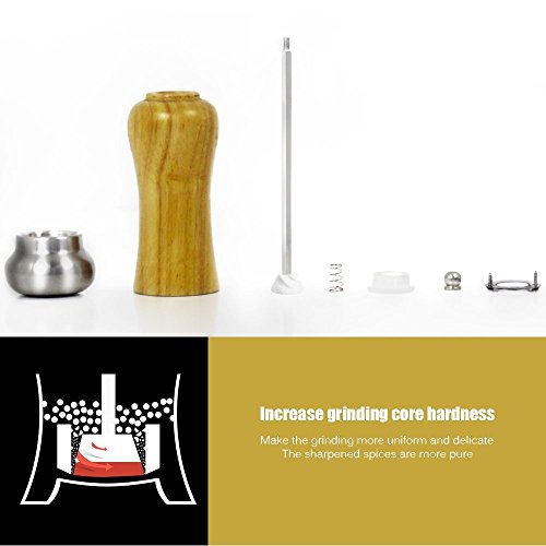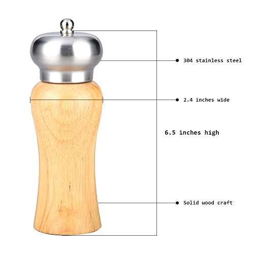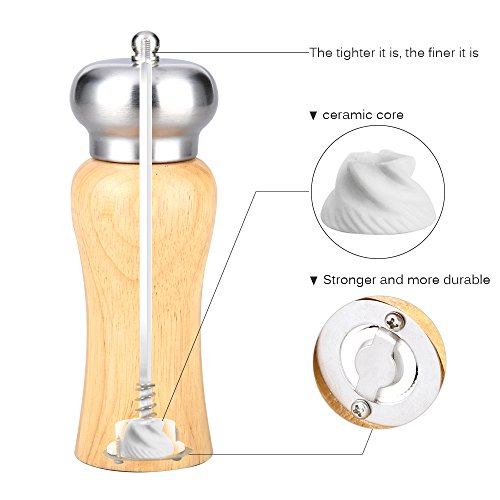 MADY Salt & Pepper Mill, Salt and Pepper Shakers Grinder, 8 Inch, Beech Wood and Stainless Steel