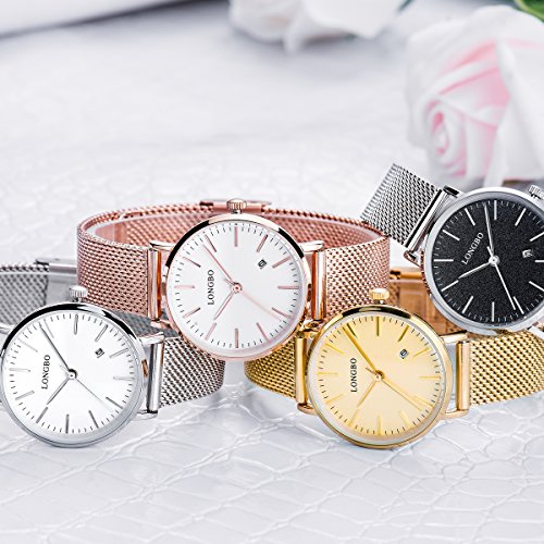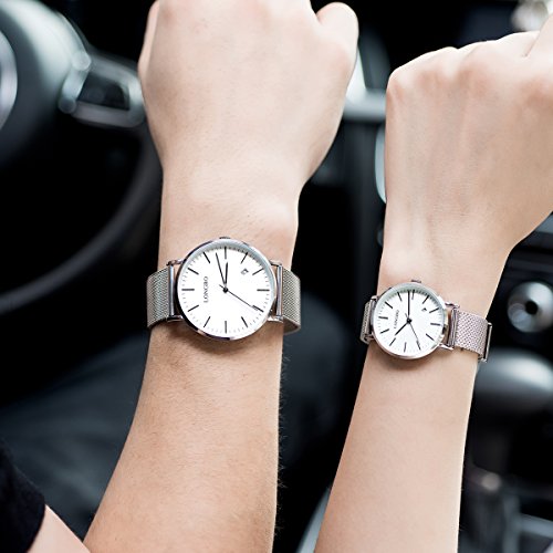 -. Title : LONGBO Simple Couple Watches Stainless Steel Band Analog Display Quartz Women Watch Sliver Ultra Thin Dial Business Wristwatch Date Waterproof 5009