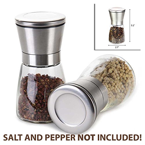 G Kitchen Premium Stainless Steel Salt & Pepper Grinder Set of 2-Pepper Mill and Salt Mill-Salt & Pepper Shaker-Ideal Gift-Spice Grinder with Adjustable Coarseness, Easy to Fill-Brushed Stainless