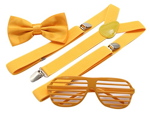 Upgrade Your Style Have All The Eyes On You! This suspender, bowtie Shutter Shades Sunglasses outfit is the perfect way to let yourself have some fun by enhancing your standard look with something more fashion-forward. Arrive in every party, , prom or costumes and grab everyone's attention! Comfortable Reliable To Wear! Ultra flexible to follow the expected teenage development up to manhood, our elastic suspenders will NOT FADE and NOT SHRINK after countless washes, making a heavy-use men's accessory with guaranteed longevity! Available in a variety of solid CLASSIC or TRENDY colors of your choice, our set will make the perfect accessory for all your party wear. Pick yours in your favorite color to make your own fashion statement, draw admiration looks on your special event and be the soul of the party! Life Is Too Short To Postpone Fun! Wear This Outfit Have A Blast Every Time! A lack of new experiences is what usually makes life uninteresting! Try something new and take your look to the next level by wearing this suspender, bowtie sunglasses outfit on every occasion and have the time of your life! Purchase Your Very Own JAIFEI Costume Accessory Kit And Win The Impressions On YOUR Event! Simply Click "Add To Cart" And It Will Be Yours Today! 0 |